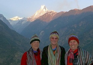 | Reise: Nepal - Luxusreise für Geniesser, Annapurna Trekking Von: Professor Dr. Winfried Schröder und Ehefrau aus Eichwalde bei Berlin Alter: 74 Jahre ( zum Zeitpunkt der Reise 73 bzw. 69), Beruf: Univ-Prof., Institutsdirekor a.D. Unsere fast 3 wöchige Reise (2 Personen) im Februar/März 2010 nach Nepal haben wir, nach dem wir das Klosterneuburger Kuoni Reisebüro im Internet entdeckt hatten und alle anderen Angebote irgendwelche Haken hatten, ausschließlich per mail, Telefon und Fax mit Herrn Wenisch organisiert. Dies war sicher ein gewisses Risiko, da wir weder das Reisebüro noch das Reiseziel kannten. Die vorbereitenden Absprachen gestalteten sich völlig problemlos, obwohl Zeitdruck bestand und es Sonderwünsche zu berücksichtigen galt. Die Reiseorganisation war excellent : Hin-und Rückflug Berlin - Kathmandu via Doha, Inlandflüge in Nepal einschließlich Transfer, Auswahl der Hotels bzw. Lodges, aber insbesondere die Betreuung vor Ort in Nepal, Besichtung des Kathmandu-Tals mit seinen Königstädten, der Aufenthalt in den Bergen nahe Kathmandu in Dhulikhel ließ keine Wünsche offen. Ein freundlicher deutschsprachiger Führer, PKW mit stets hilfsbereitem Fahrer standen jederzeit pünktlich zur Verfügung und machten die Ausflüge durch die Fülle der Informationen immer wieder zu neuen Höhepunkten. Weitere Höhepunkte waren die Aufenthalte im Naturreservat Chitwan nahe der indischen Grenze mit Elefantenritt und sachkundigem Führer für Fauna und Flora durch den Dschungel und Kanufahrten auf glasklarem Fluss und schließlich die Trekkingtour im Annapurna-Himalaya auf den bekannten Poon-Hill (3200m) mit der herrlichen Aussicht auf die über 8000m hohen Eisriesen in der aufgehenden Sonne. Durch die Führung des sehr erfahrenen, stets hilfsbereiten Sherpas Wongchu und den immer aufmerksamen Träger (Gepäck) Mingma, die beide sehr einfühlsam auf alle unsere Probleme, die wir als ältere Flachlandbewohner im Hochgebirge hatten, reagierten, wurde die mehrtägige, für uns als Ältere, relativ anstrengende Tour zum unvergesslichen Erlebnis. Wir wären unter seiner aufmerksamen Fürsorge, ob auf den Bergpfaden oder in den Lodges beim gemeinsamen Essen, gern noch auf ganz andere Gipfel gestürmt! Der Abschied von den Bergen und überhaupt aus Nepal fiel uns auch dadurch sehr schwer. Und auch das sollte noch erwähnt werden: Die Reise zu einem immer noch moderaten Preis! Wir denken immer noch gern zurück und würden so gern die Uhr zurückdrehen! Winfried und Edith Schröder |